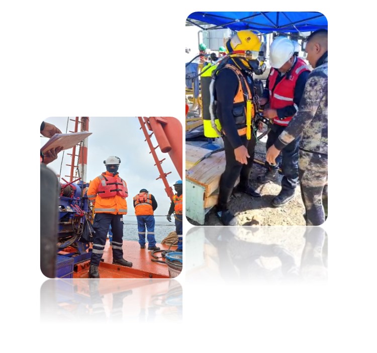 Contamos con un equipo profesional de buzos especializados en realizar servicios de mantenimiento de terminales multivoyas, lanzamiento de líneas submarinas, reflotamiento de embarcaciones, limpieza de casco.
